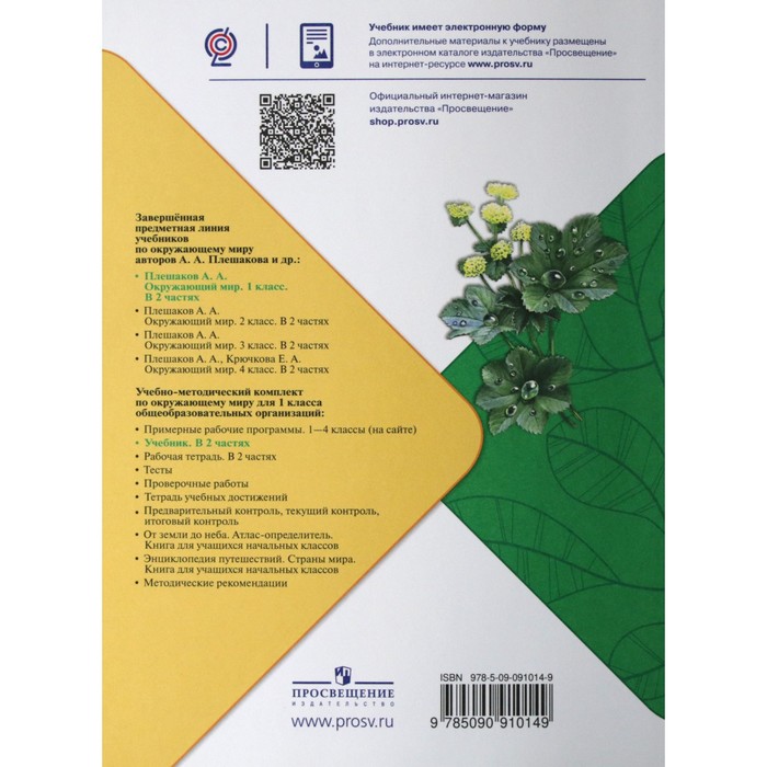 The textbook "The World" is part of the educational system "School of Russia". The material of the textbook allows you to implement a system-activity approach, organize differentiated training and ensures the achievement of personal, subject and meta-subject results of mastering the basic educational program of primary general education. The system of tasks ensures the development of knowledge, skills through practical activities. The tools for organizing design and educational and research activities will contribute to the formation of environmental thinking, creative abilities, cognitive interest, functional literacy. The content of the redesigned textbook has a number of additions and changes: new tasks have been added to the development of communication, cooperation, creativity; Actual facts, training texts are complemented and expanded. Added “Appeal to Students”, the headings “Our Projects” and “Pages for Curious” were transferred to the end of the textbook. The textbook was prepared in accordance with the requirements of the Federal State Educational Standard for Primary General Education.