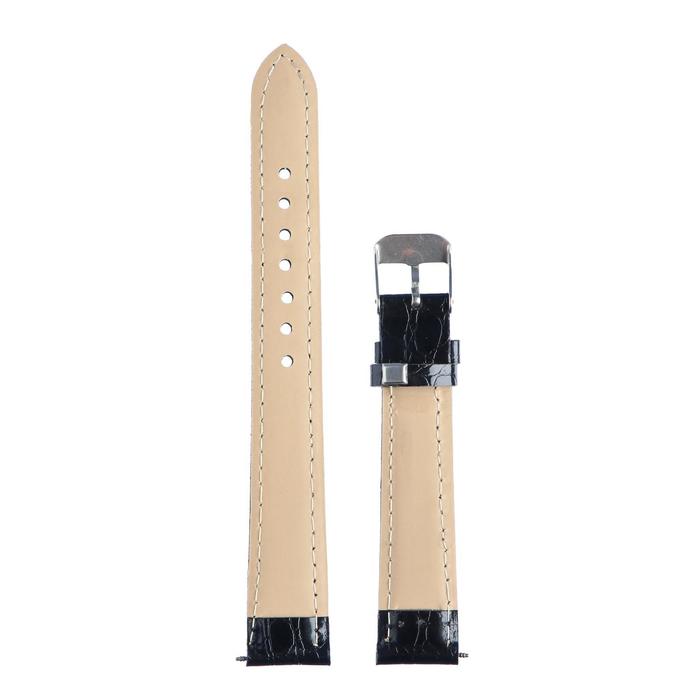 16 mm watch strap, varnished eco -leather, 19 cm, black