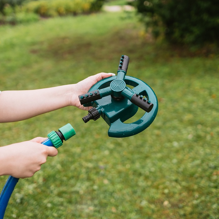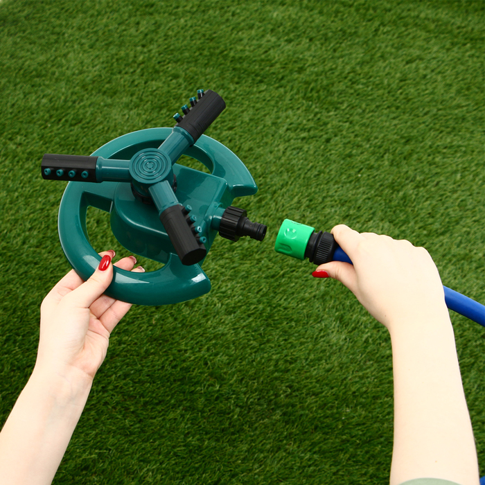under the pressure of water, the spraying head begins to rotate. The design provides a supporting platform that provides it with a sufficient level of stability.