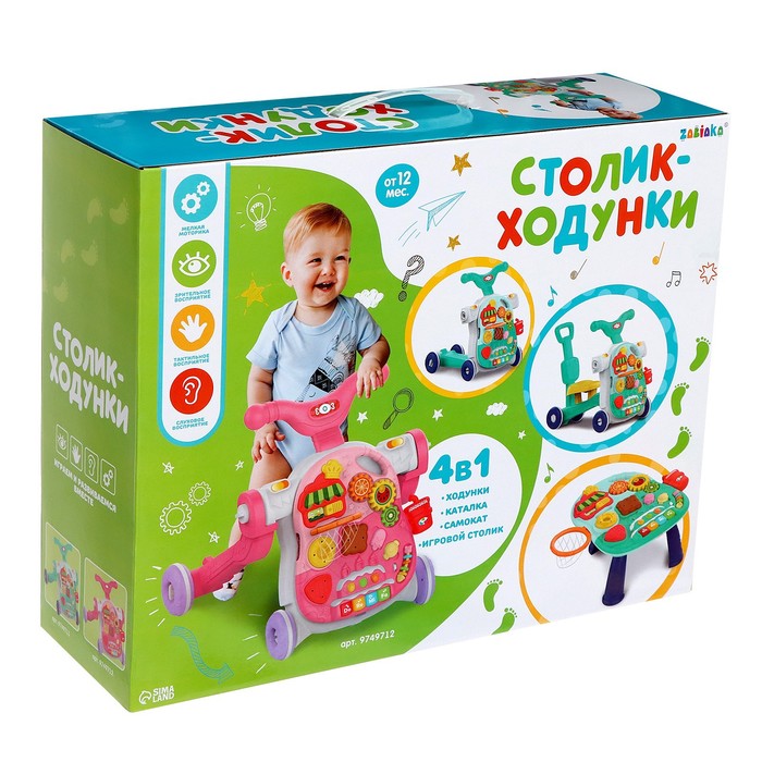 with the help of walkers the child will learn to walk independently, to distinguish colors and shapes, develop logical thinking, fine motor skills and attention.