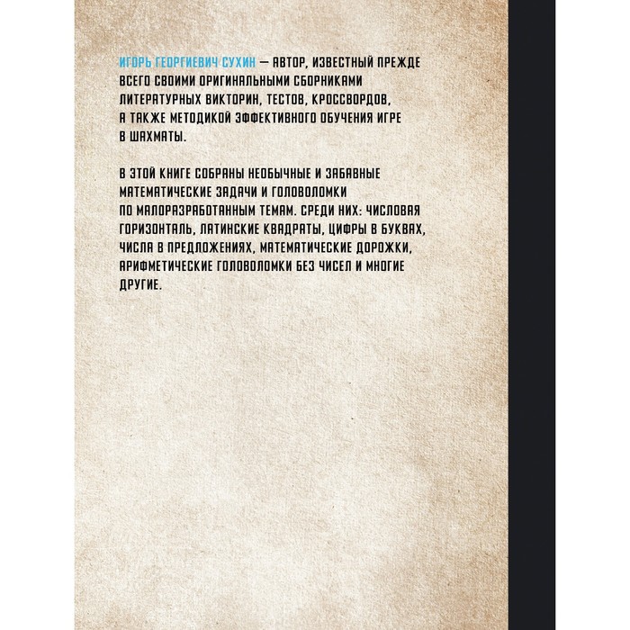 Igor Georgievich Sukhin is an author, known primarily by his original collections of literary Victorin, tests, crosswords, as well as a methodology for effective learning to play chess.