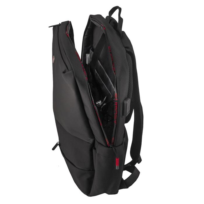 A backpack, a lightning department, with USB, mount on a suitcase, black color