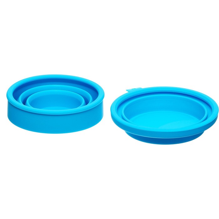 A glass for the Divente. School, silicone, folding, collected 80 x 90 x 80 mm, in a folded 80 x 10 x 80 mm, with silicone lid, neon blue.