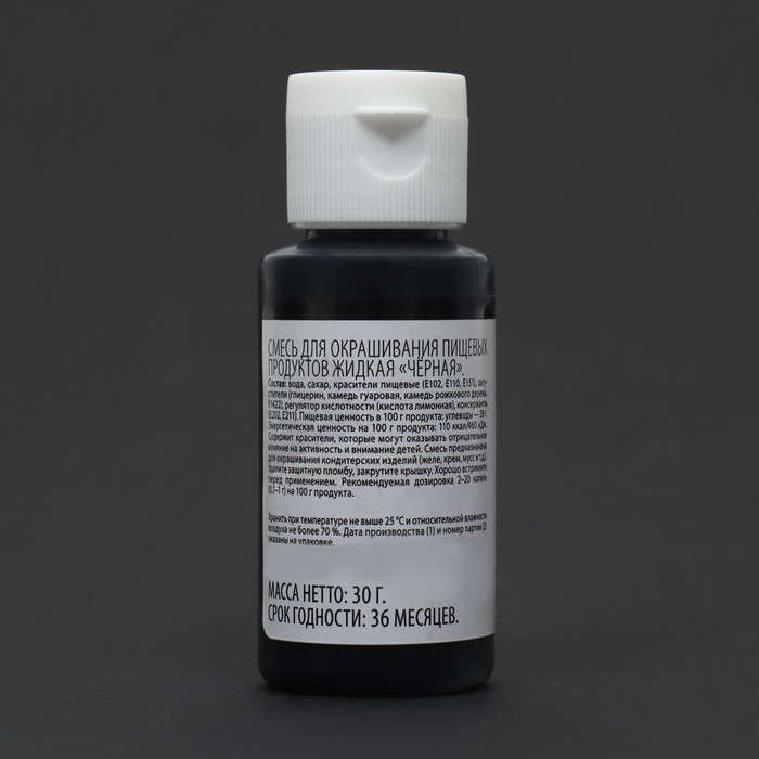 Water -soluble dye with a high concentration of a coloring pigment. A thick consistency allows it to be well painted throughout the mass of the main confectionery semi -finished products (jelly, mousse, cream, dough, mastic and others), without changing their consistency. It has no taste and aroma, so it retains the initial taste properties of a painted product. Recommended dosage: 2-3 drops (0.1-0.15 g) per 100 grams of painted mass. Sold in a tube of 100 grams. Method of application: before use, puncture the seal of the tube, it is not recommended to cut off.