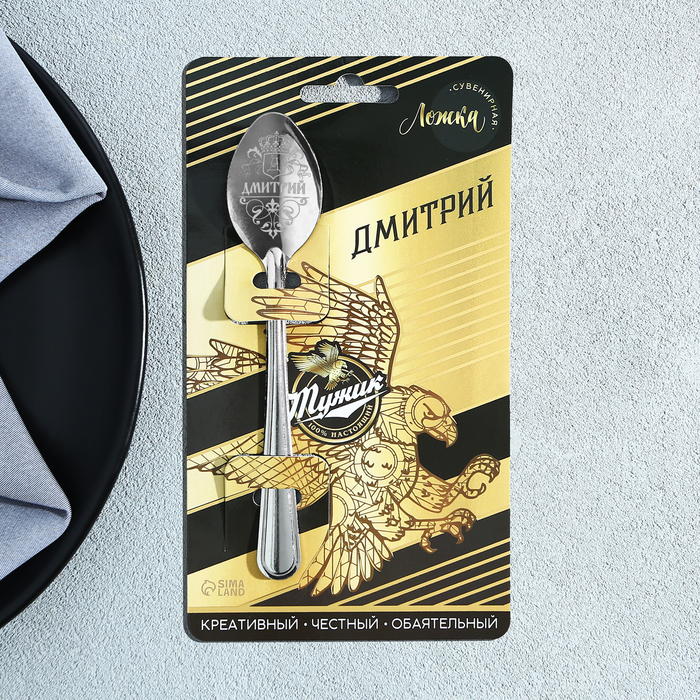 A name spoon on the card "Dmitry", 3 x 14 cm.