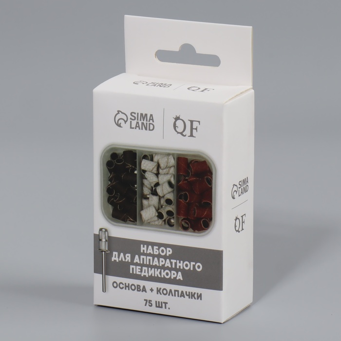 A set for a hardware pedicure, base, caps 75 pcs, abrasiveness 80/120/180, in a case