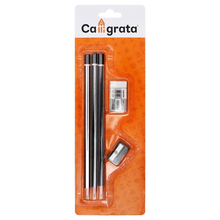 A set of black -graphic pencils 3 pieces, sharpener, eraser