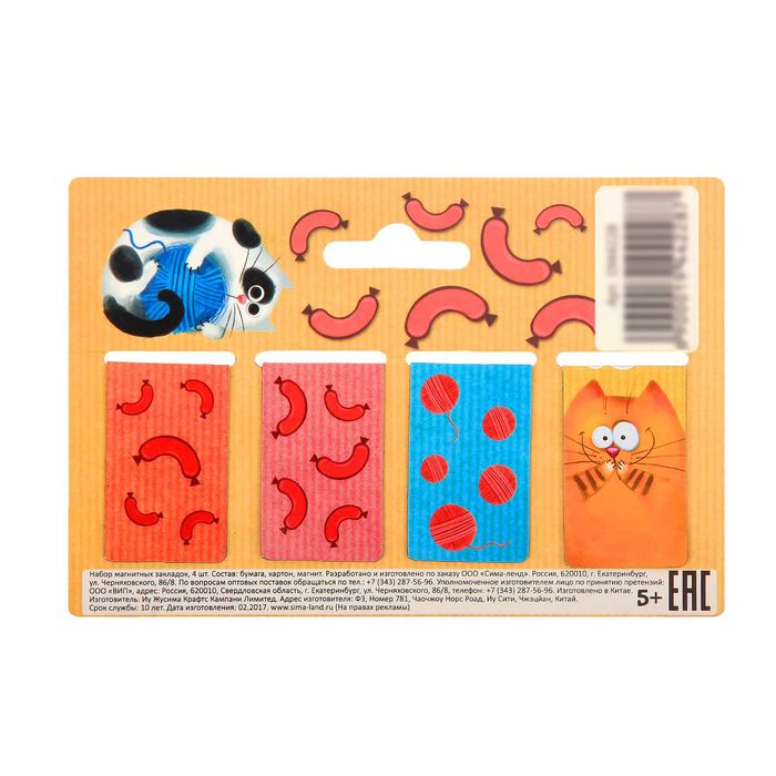 A set of magnetic bookmarks "Curious cats", 4 pcs.