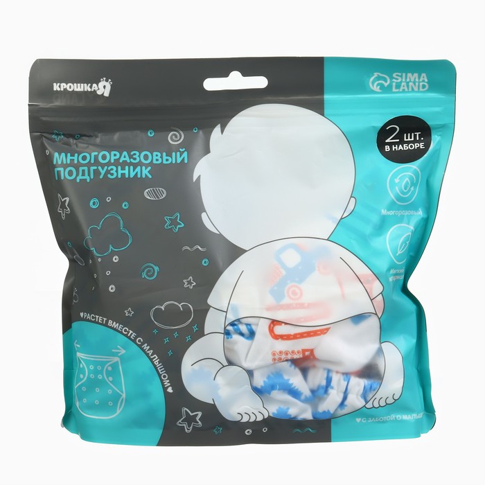 A set of reusable diapers "Machines", 3-8 kg, white, blue, 2 pcs., I crush me