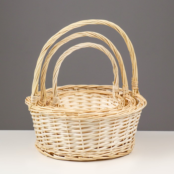 A set of wicker baskets, willow, 3 pcs., Light brown