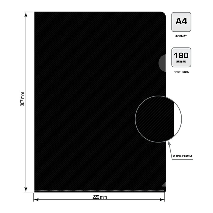 A4 180MKM corner folder, calligrata deluxe, black, opaque, with embossing