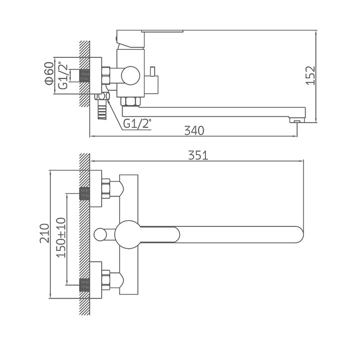 ACCOONA A71103 bath mixer, single -leaf, stainless steel, chrome