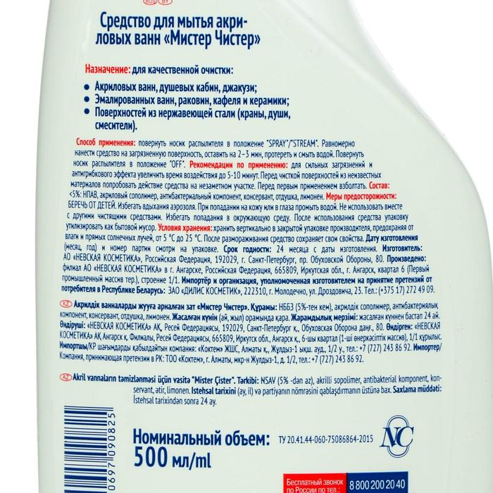 Acrylic bathtub washing tool Mr. Chistor, 500 ml