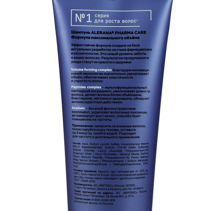 Alerana Pharma Care hair shampoo, maximum volume formula, 260 ml