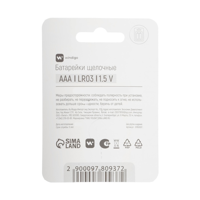 Alkalin Battery Windigo, AAA, LR03, Blister, 2 pcs