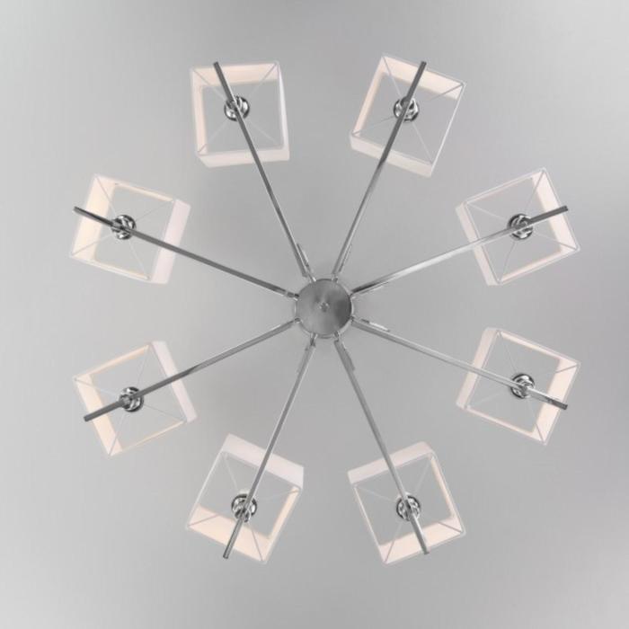 The ceiling chandelier with 8 white horns is designed to create the main lighting in modern and classic interiors, suitable for various types of rooms: the living room, the bedroom and designed for the lighting area of 21 m². The designer chandelier is equipped with cartridges with the E14 base, which are designed for the maximum power of the 40 watts lamps.