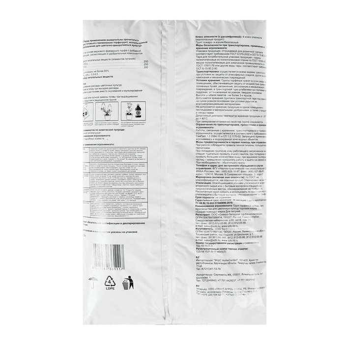 A completely ready peatogront for petunias, asters, marigolds, nasturtiums, salvia. Accelerates growth and provides abundant flowering from the beginning to the end of the season. Used without dilution.