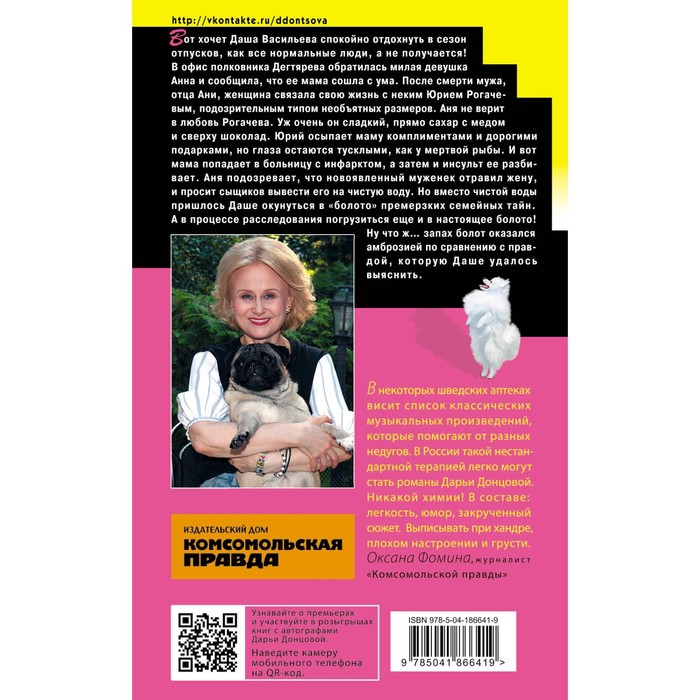 Anya does not believe in Rogacheva's love. He is very sweet, right sugar with honey and chocolate on top. Yuri shows his mother with compliments and expensive gifts, but his eyes remain dull, like dead fish. And then mom gets to the hospital with a heart attack, and then the stroke breaks her. Anya suspects that the newly -minted hubby poisoned his wife, and asks the detectives to take him to clean water. But instead of pure water, Dasha had to plunge into the “swamp” of premium family secrets. And in the process of investigation, plunge into a real swamp!