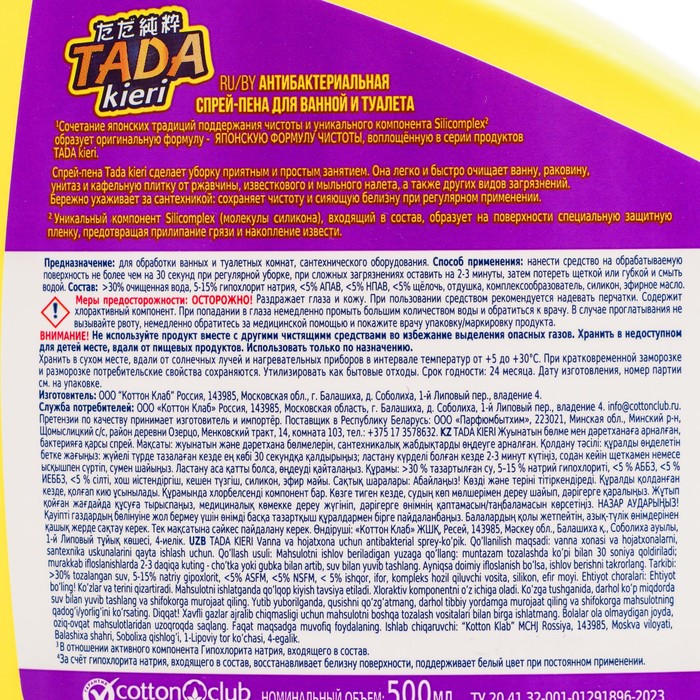 TADA KIERI Antibacterial spray for a bath and a 500ml toilet