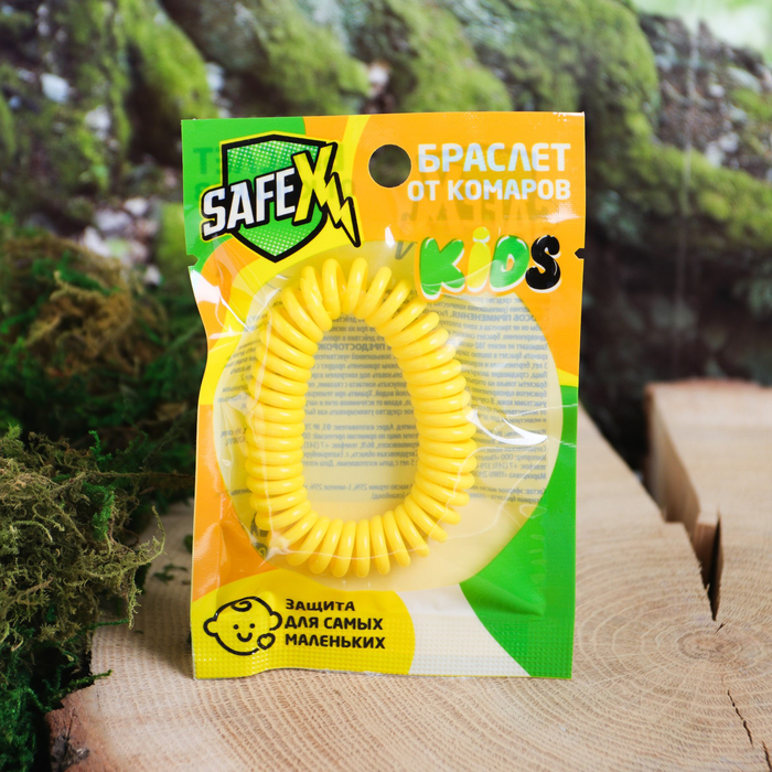 Antimoscate bracelet SAFEX, spring, No. 1, yellow, 1 pc. 4098059 protects from the attack of mosquitoes with their low and medium numbers, helps to reduce the number of bites. The scrap is put on the arm or leg so that it does not fit the skin closely. Extracts are effective for at least 180 hours. In the intervals between use, stored in tightly closed packaging. For increased protective action, it is allowed to use at the same time no more than 2 bracelets up to 6 hours a day. Do not use children under 3 years of age, pregnant and lactating women, people with increased sensitivity to chemicals. Composition: silicone, insecticidal impregnation