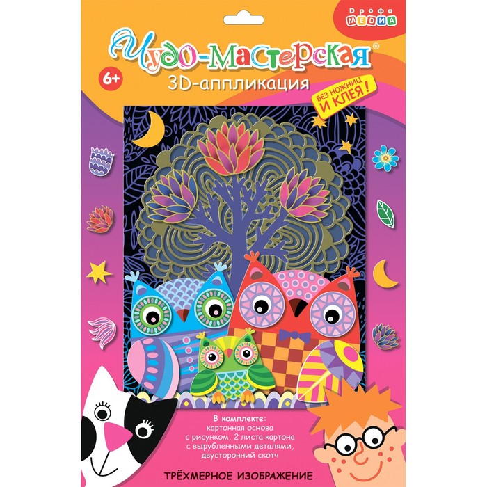 Аппликация 3D «Совы в лесу» — это не просто набор для рукоделия, это увлекательное путешествие в мир объемной красоты, где яркие краски и замысловатые формы сплетаются в неповторимую симфонию.