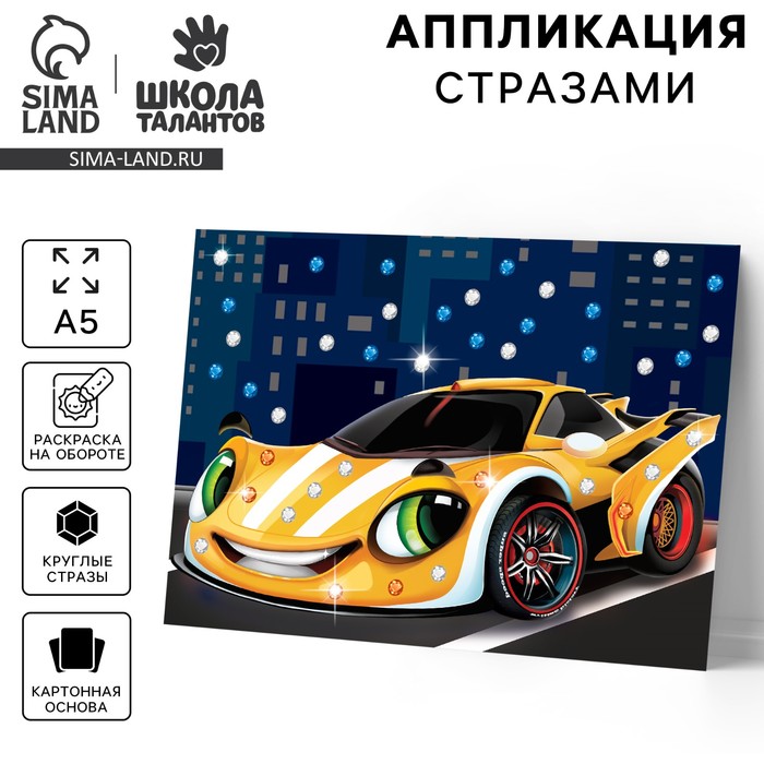 Application with rhinestones "High -speed car" 14.8x21 cm