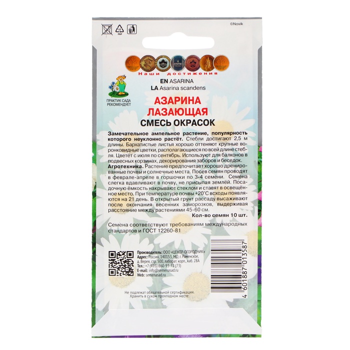 A wonderful ampelous plant, the popularity of which is growing steadily. The stems reach 2.5 m of length. Velvety leaves are well shaken by large funnel -shaped flowers located along the entire length of the stem. Blooms from July to September. Used for balconies in suspended baskets, decorating fences and arbors. Garro -technology. The plant prefers well -drained soils and sunny places. Sowing seeds is carried out in February-April in pots of 3-4 seeds. Seeds are slightly pressed into the soil, without sprinkling with earth. The landing container is covered with glass and placed in a lighted place. At soil temperature +20 ° C, shoots appear on 21 days. Seedlings are planted in open ground after the end of spring frosts, withstanding the distance between plants 45-60 cm. Semen meet the requirements of international standards and GOST of the Russian Federation 12260-81