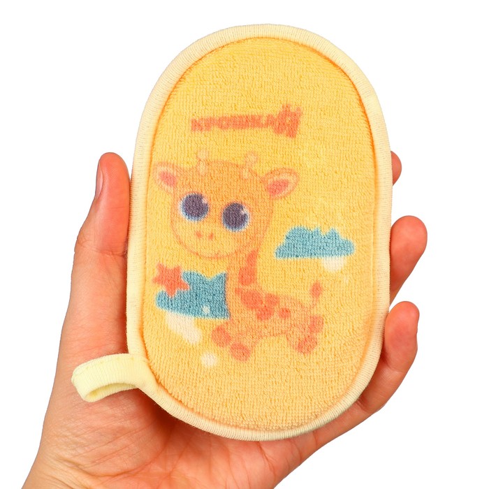 The soft and fibrous material of the washcloth will carefully cleanse the baby's delicate skin, and the loop in its lower part is suitable for convenient and practical storage.