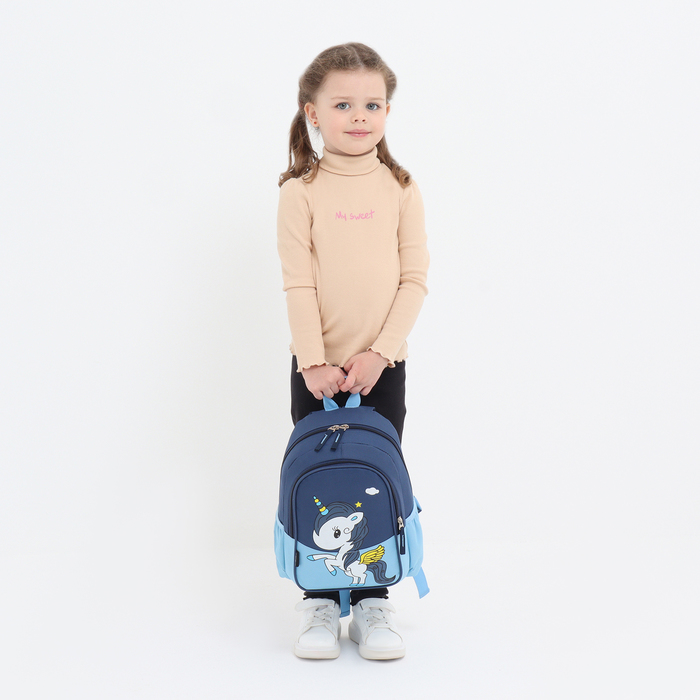 Baby backpack on lightning, external pocket, blue/blue color