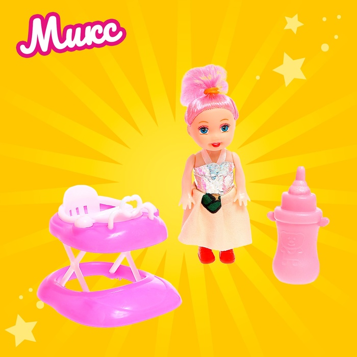 Baby Eva will wait for you for a fun game! Go with her for a walk in a stroller or bicycle, teach her to walk on the walkers, feed her from the bottle. The height of the doll is 10 cm. Comb her hair, make a hairstyle.