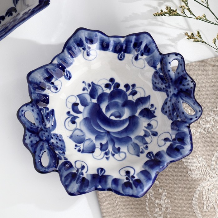 So the recognizable style of Gzhel appeared-the blue landscape and plant painting, which connects to the geometric ornament on a snow-white background. Masters paint each item only manually.