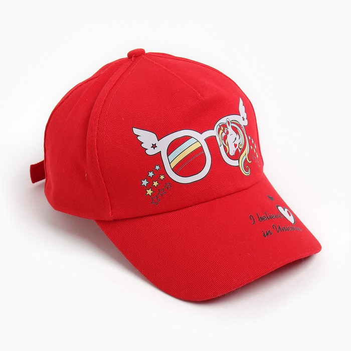 Baseball cap for girls, red color, size 52-54