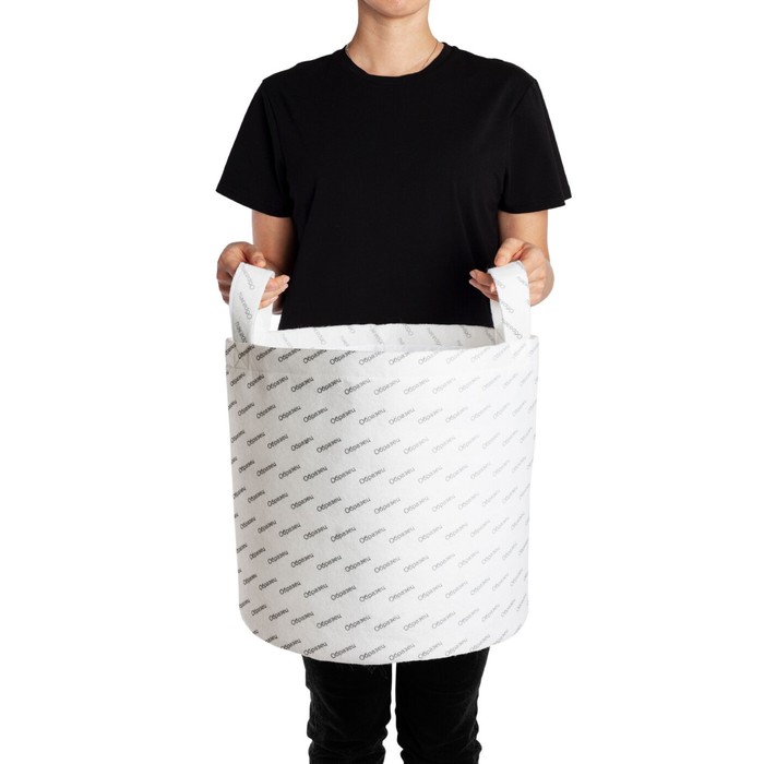 The main advantage of the fabric basket for linen is that with a volume of 34 liters, in an empty condition it easily folds, takes a minimum amount of space and can be stored anywhere. The basket is made of artificial felt, the upper part of the product has a fabric cover on a fixing lace.