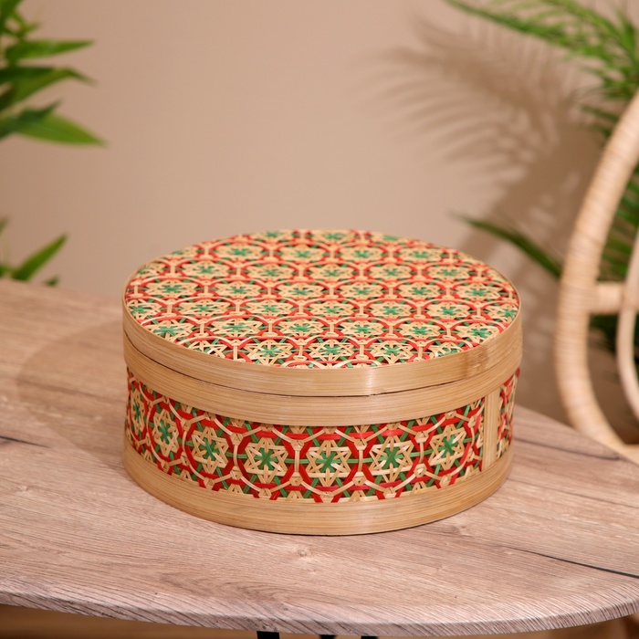 Basket with a covered lid, from bamboo 30x30x13 cm