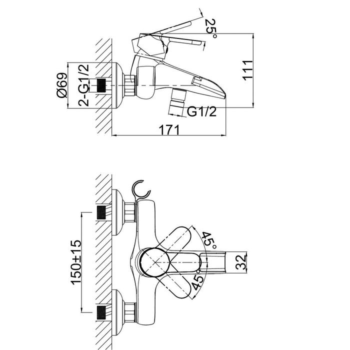 Bath mixer D&K Rhein Marx DA1393501, single -leaf, chromium