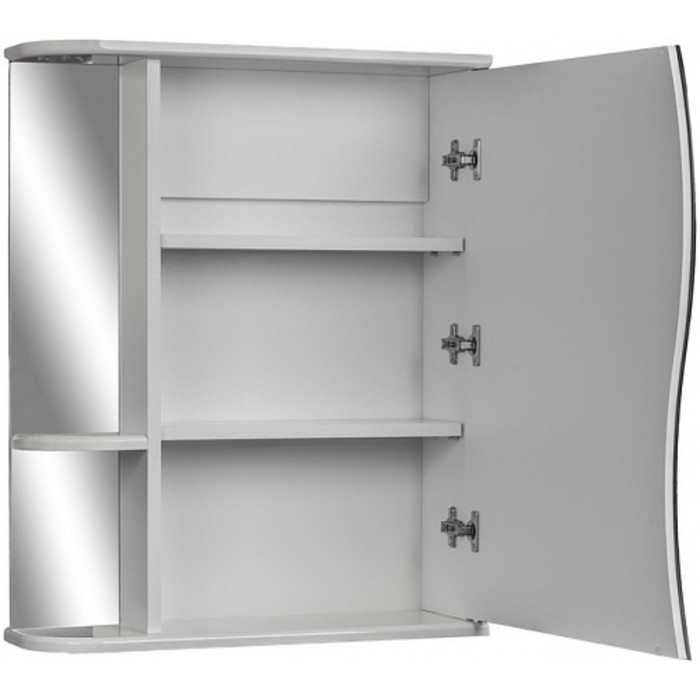 the ward cabinet “Wave 1” is distinguished by regiments on the right side, it is also in the left version. The cabinet - the “wave 2” mirror in the left and right, has a shelf on the sides of the shelves. > The series is made of chipboard and LMDF covered with PVC film. The loops are equipped with a closer.