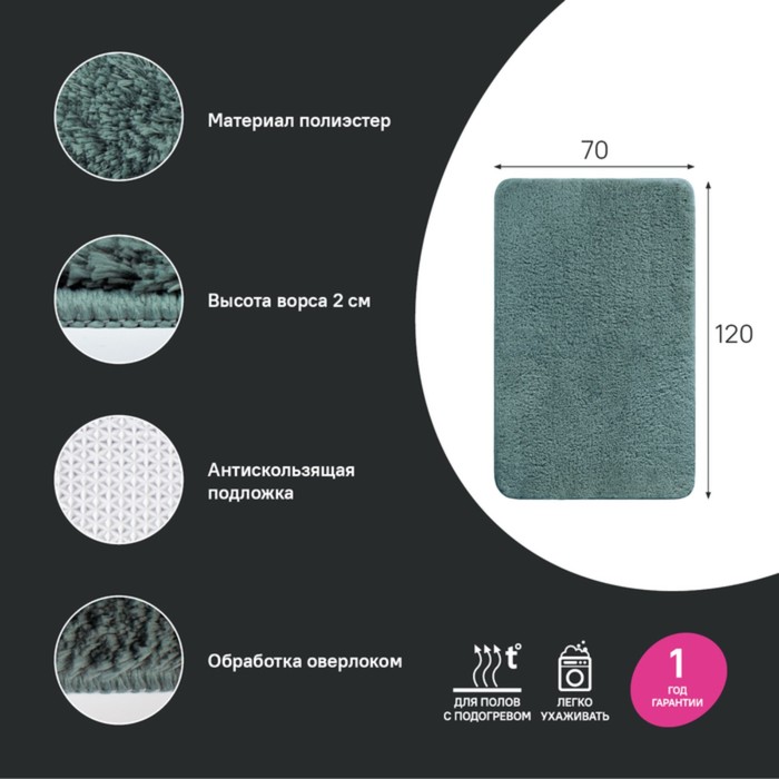 Bathroom mat IDDIS, 70x120 cm, microfiber, dark green color