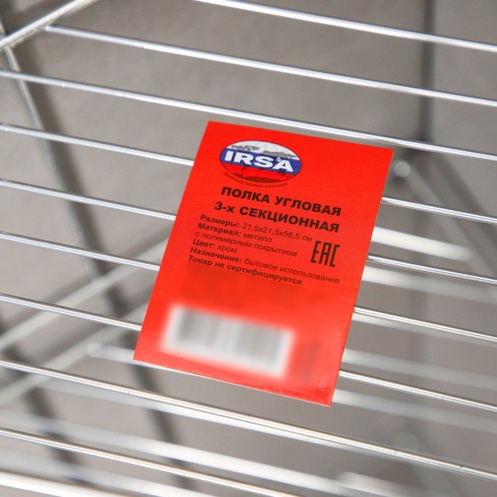 Bathroom shelf is an angular 3-tier, 21.5 × 21.5 × 58.5 cm, color chromium