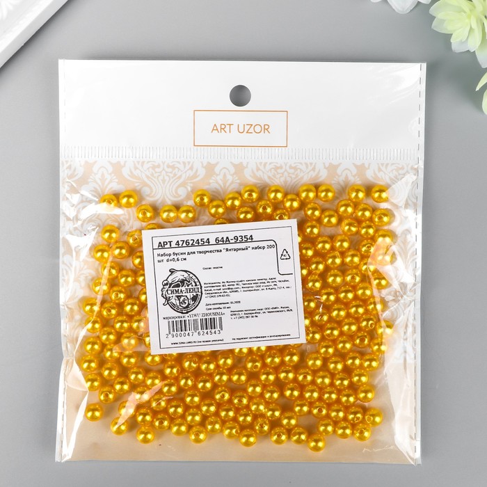Beads for creativity plastic "Amber" set 200 pcs d = 0.6 cm