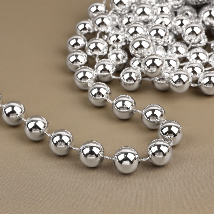 Beads on threads, round, 12 mm, 2 m, silver color