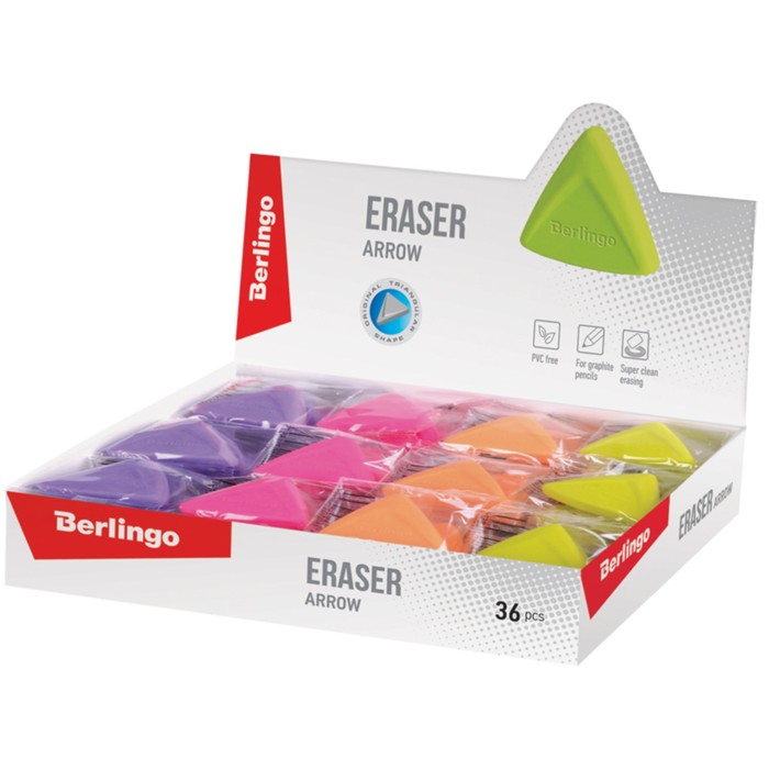 Berlingo Eraser "Arrow", 40x35x10 mm, triangular, thermoplastic rubber