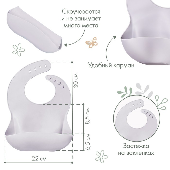 The silicone bib does not get wet, so the baby’s clothing does not get dirty during feeding. Salunavchik has a pocket where all the crumbs get: not only the child himself will remain clean, but also the place where he eats.