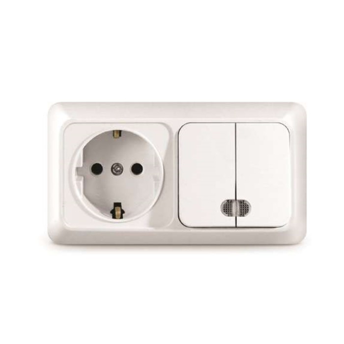 The case is a shape of plastic, white. The contact group of products is made of brass. It is mounted horizontally, to a depth of 48 mm, to the surface of the wall. Recommended for residential premises and administrative buildings.