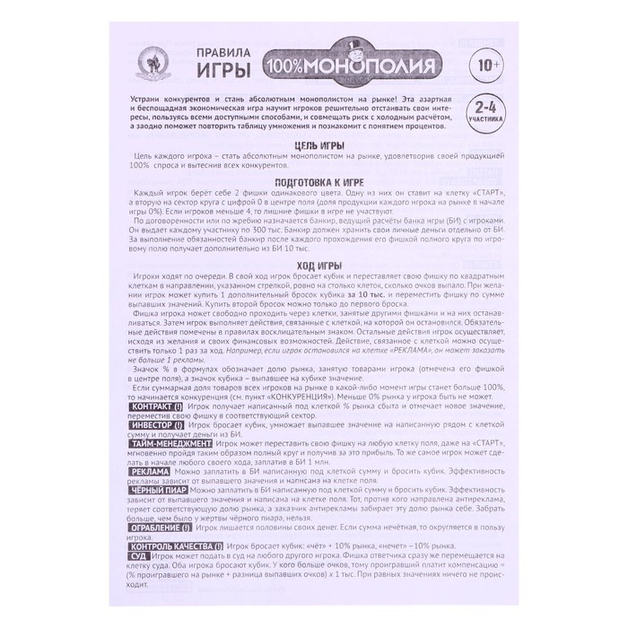 Board Economic Game "100%Monopoly", 2-4 players, 10+