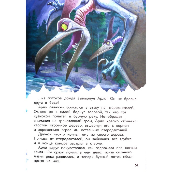 Dinosaurs lived on the ground a long time ago. But once a huge asteroid crashed into our planet - and the dinosaurs disappeared... But what if this did not happen? Let's imagine that the asteroid flew by, and all the dinosaurs survived... Read a colorful good story about the little apatosaur Arlo and his friend - a cave boy.