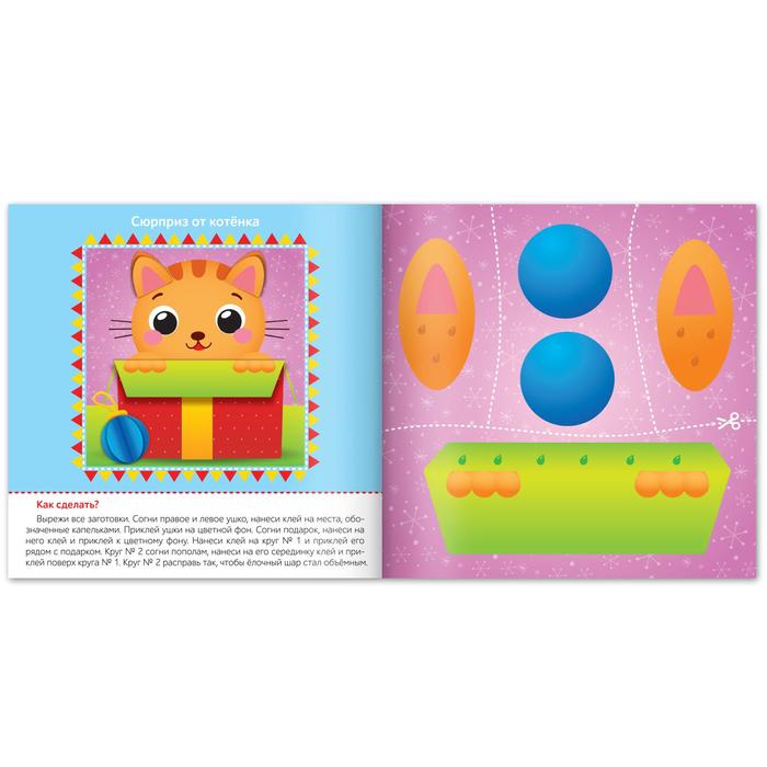 Features of the book- The baby will cut out the details proposed in the book and use glue. So the child will learn how to create New Year's crafts.