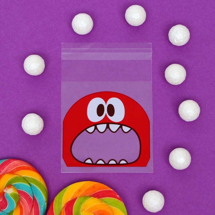 BOPP package with sticky tape, "monstrik", 7*7+3cm