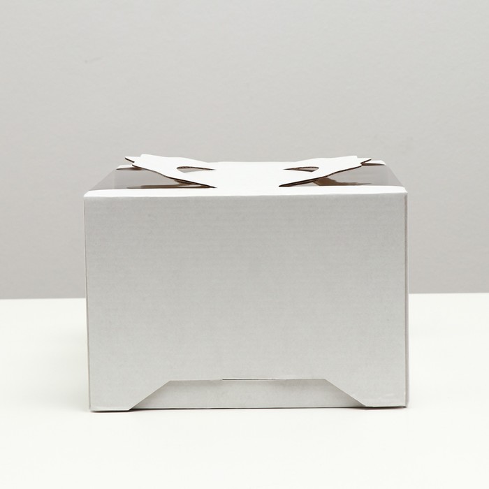Box for cake 2 windows, with handles, white, 21 x 21 x14 cm