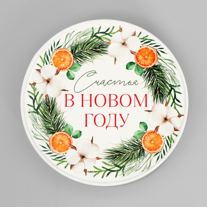 Box Gift round "Happiness", 12 x 16 cm, New Year