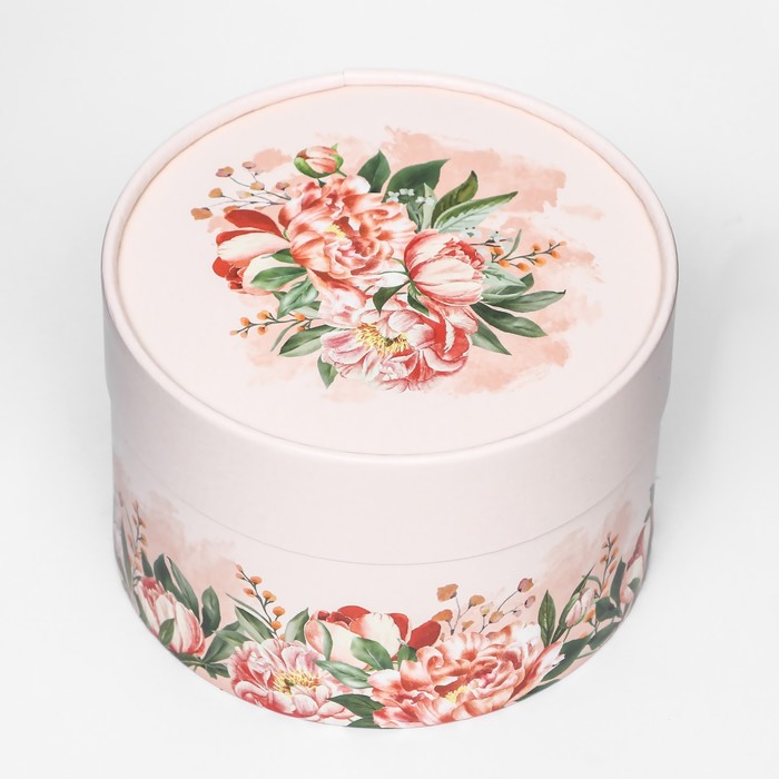 Box "Piones on beige", hooked, 13 x 8.5 cm